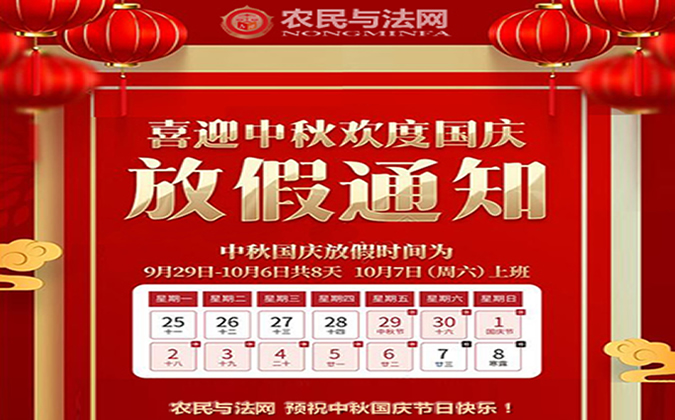 2023年喜迎中秋歡慶國(guó)慶,至此雙節(jié)來臨之際農(nóng)民與法網(wǎng)預(yù)祝中秋國(guó)慶節(jié)日快樂!